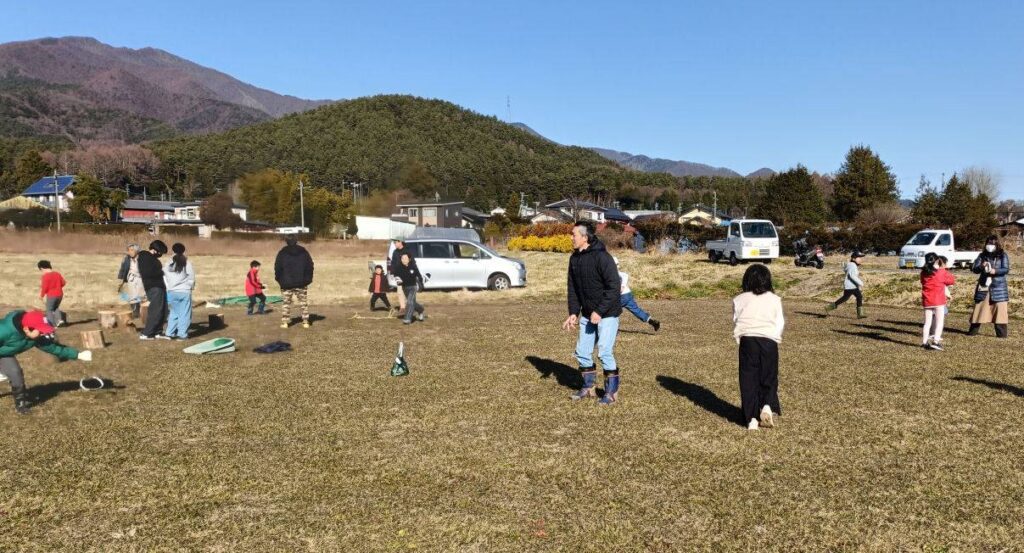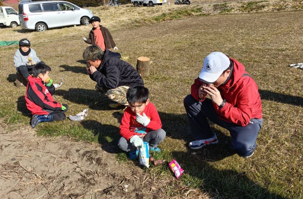 12月半ば、集落センターにて焼きイモ会を行いました。風のない好天で焼き芋には最高の条件下で、参加者26人と役員を合わせ31人で楽しくできました。