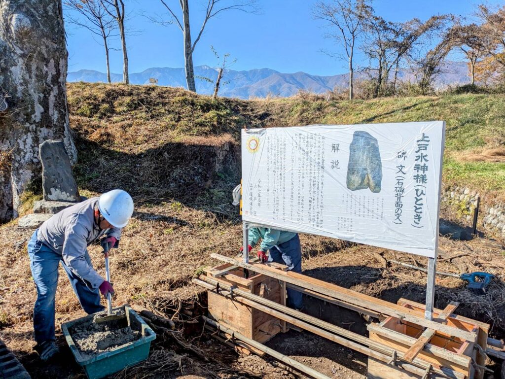 11月中旬、有志の方々が集まり重機等を使っての看板設置作業を無事終えることができました。つきましては、以下の予定で新しい看板のお披露目会を行います。